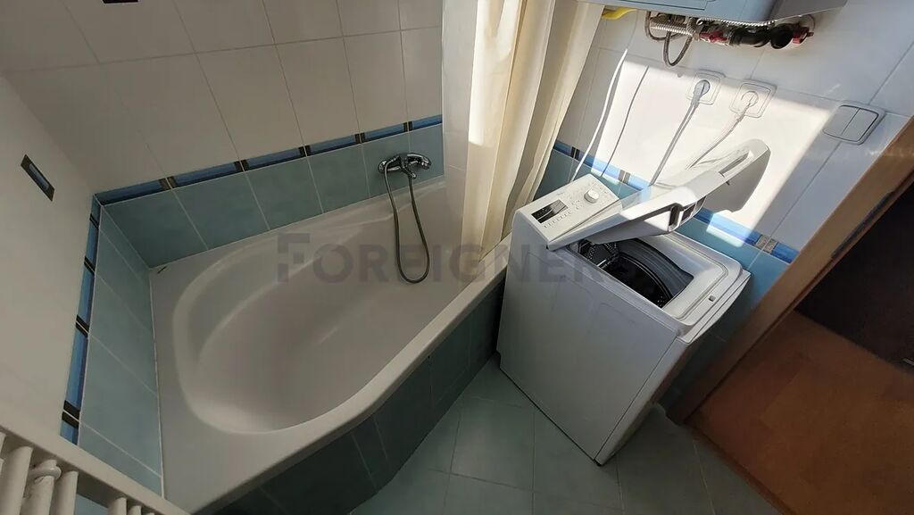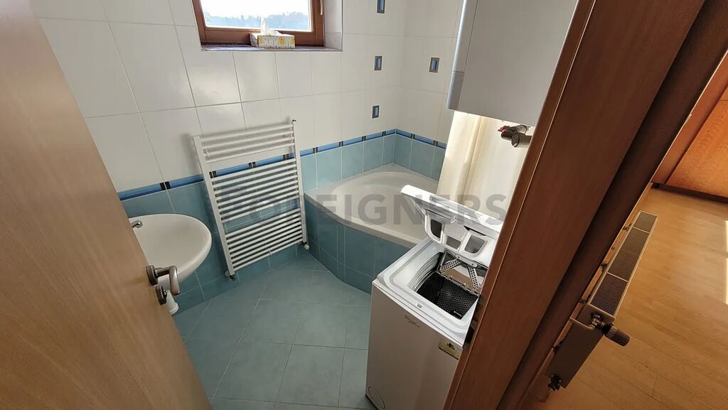 Na stejném patře se nachází koupelna s vanou, umyvadlem a pračkou, a také samostatná toaleta.
