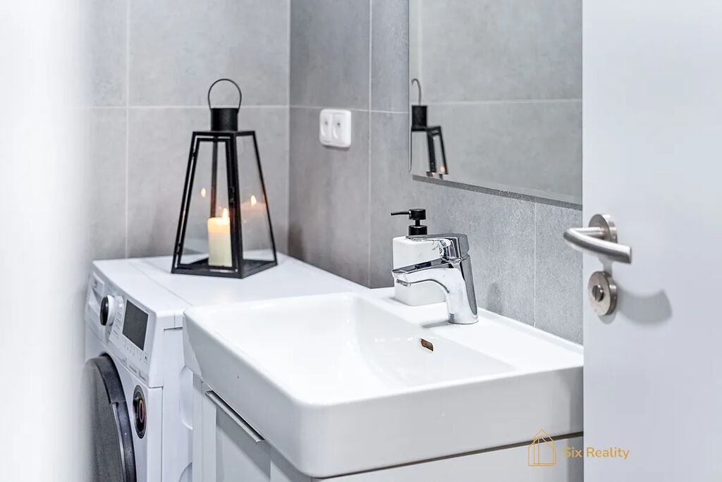 Byt o dispozici 3+kk s užitnou plochou 63 m² je ideálním domovem pro pár či mladou rodinu, která hledá prostor, světlo a jednoduchost. Moderní kuchyně na míru plynule přechází v obývací část a tvoří srdce celého bytu. Každé ráno vás probudí východní slunce, které sem proniká velkými okny i na pětimetrový balkon – ideální místo pro ranní kávu nebo chvíli klidu. Dispozice bytu působí svěže a přirozeně – nic tu není navíc. Vestavěné skříně v chodbě i v jednom z pokojů přinášejí pořádek a vzdušnost.