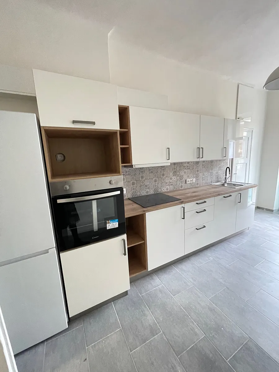Do kuchyně s plně vybavenou kuchyňskou linkou - lednice, el.trouba, el.sklokeramická deska, myčka nádobí, digestoř. Kuchyň má balkon do klidného vnitrobloku a praktickou spíž.