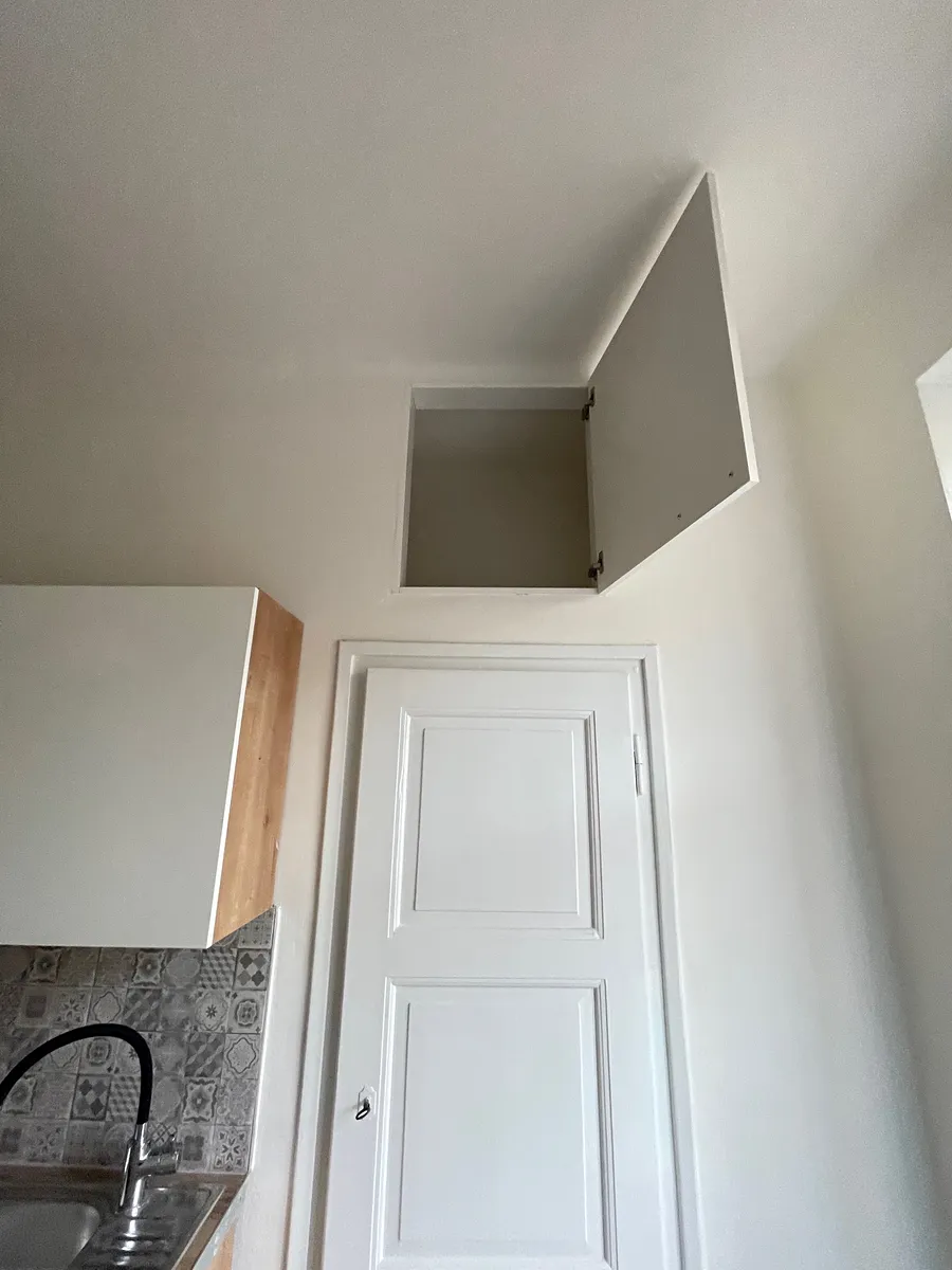 Podlaha v pokoji je dřevěná. V kuchyni, na chodbě a v koupelně je dlažba.