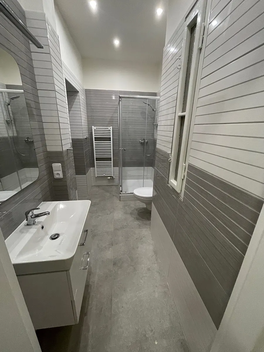 Do samostatného pokoje s výhledem do klidného zeleného vnitrobloku, který lze využívat obyvateli domu.