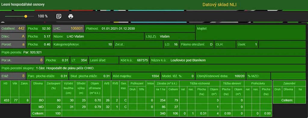 Jedná se o p.č. 2206 vedená jako lesní pozemek o celkové výměře 4 560 m2. Stáří lesa a LHO viz. foto.