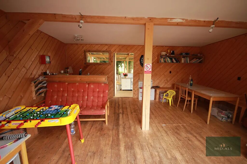 Na pozemku se dále nachází samostatná budova s dámskými i pánskými toaletami a sprchami, bazén, sportoviště a dětské hřiště. Parkování je zajištěno přímo v areálu. Areál je napojen na elektřinu včetně 380 V a vodu ze studny. Vše se prodává včetně kompletního vybavení, takže je ihned připraven k provozu nebo k soukromému využití.
