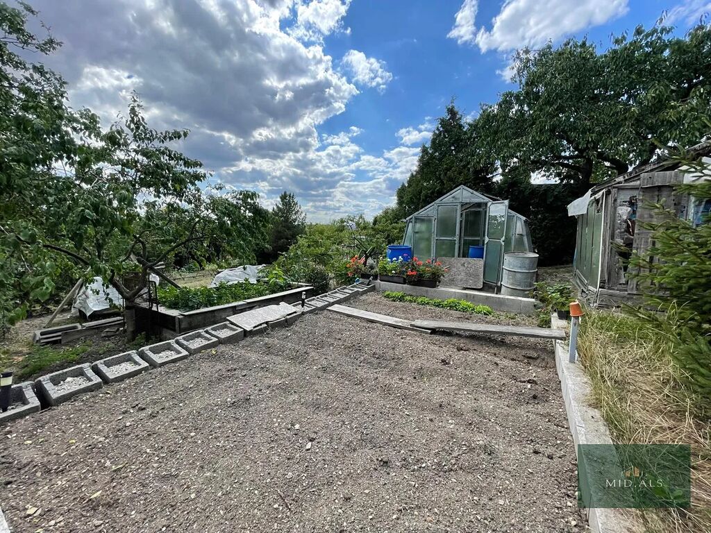 Je ideální pro skutečné zahradní nadšence, zahrada má zavedené vyvýšené i přízemní záhonky, dva skleníky, prostor pro posezení a grilovačku s přáteli, zázemí ve formě zahradního domku. Stín poskytuje vzrostlá a plodící třešeň, stejně tak borovice. Najdete zde meruňku, švestku, jabloně, broskev, také slaďoučké maliny, jahody či borůvky, bylinky všeho druhu, zeleninu na jakou si jen vzpomenete, vinnou révu, barvitost podtrhnou okrasné květiny, nádhera pohledět !