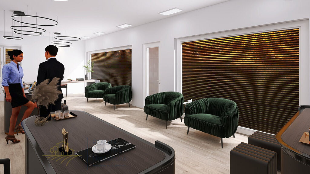 Součástí nabídky jsou profesionální vizualizace, které ilustrují možnosti využití prostoru jako moderních kanceláří nebo designové kavárny.