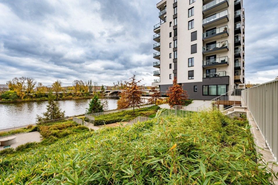Pronájem kompletně vybaveného, nového, designového a prostorného bytu 2+kk (64,8m2) s terasou a okouzlujícími výhledy na Vltavu a přilehlé okolí plné zeleně umístěného v 5.podlaží moderního, velmi oblíbeného rezidenčního komplexu MARINA ISLAND (2018) s 24h recepcí, ostrahou, kamerovým systémem, posilovnou, myčkou aut s plnohodnotným parkovacím místem a sklepem v ceně nájmu. Mimořádně atraktivní a žádaná lokalita v příjemném prostředí na holešovickém poloostrově, u Vltavy, v turbulentně se rozvíjející části Praha 7 - Holešovice s rychlým spojením do centra a kompletní občanskou vybaveností v pěším dosahu.