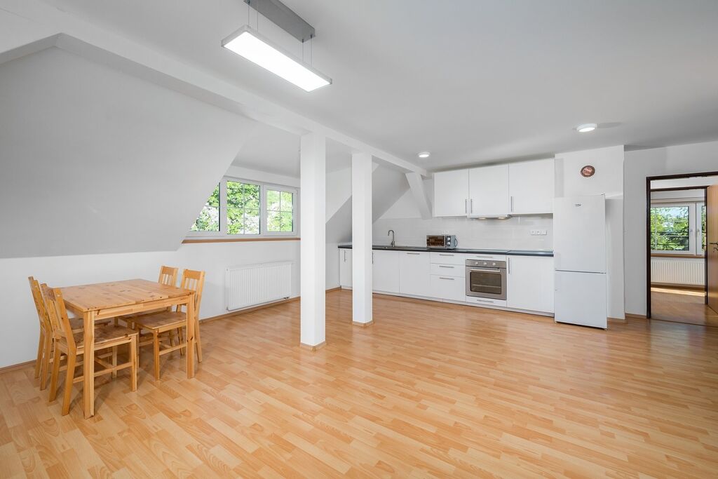 Nabízíme k pronájmu kompletně zrekonstruovaný podkrovní byt 3+kk s terasou a částí zahrady o výměře 80 m2, který se nachází v 2. NP ve zděném dome v ulici Dlouhá v Liberci. Podlahy v bytě jsou plovoucí, v koupelně je dlažba. Okna plastová + 2 střešní dřevěná. V koupelně sprchový kout. Dominantní místností je velký obývací pokoj s kuchyní a dále jsou v bytě dva další pokoje. Nová prostorná kuchyňská linka s vestavěnou troubou a varnou deskou. K vybavení bytu patří téměř nová lednice a pračka. Možno využívat terasu s přístupem ze zahrady a přední část zahrady. Terasa má cca 20m2. Parkování u domu. V domě jsou pouze dva byty. Byt má vlastní elektrický kotel. Vratná kauce 17.500,- Kč. Záloha na služby 5.000,- Kč včetně elektřiny a internetu. Vynikající občanská vybavenost a dopravní dostupnost. Možno dlouhodobě.