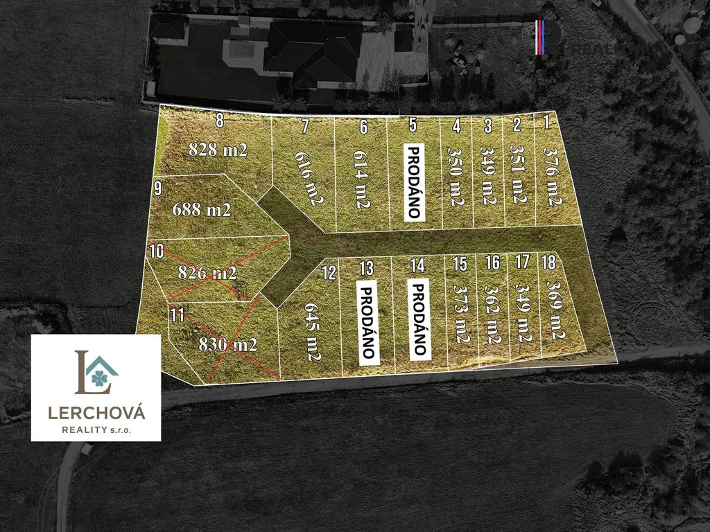 Ve fotografiích jsou vyznačeny pozemky, které již mají svého nového majitele.