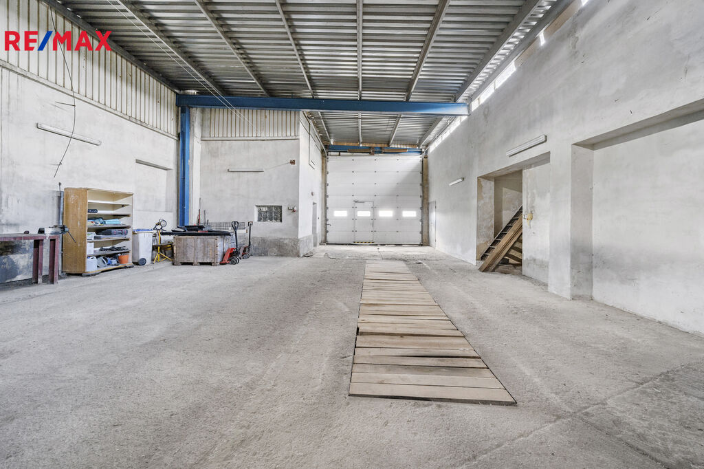 Dvoupodlažní budova s celkovou užitnou plochou 1 220 m², je aktuálně v 1. nadzemním podlaží dispozičně rozdělena na prostory výrobní, skladové a administrativní s odpovídajícím sociálním zázemím. Dominantním prostorem je 148 m² veliká dílna s výsuvnými vraty, která byla využívána pro servisování nákladních automobilů. K dispozici jsou rovněž 2 dvojgaráže.
