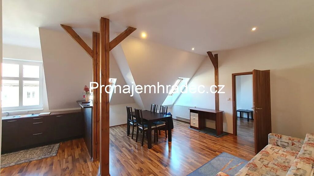 Nabízíme k dlouhodobému pronájmu zařízený podkrovní byt 2+kk, který se nachází v ulici Okružní, Hradec Králové. Byt bude volný od 12. 11. 2025.