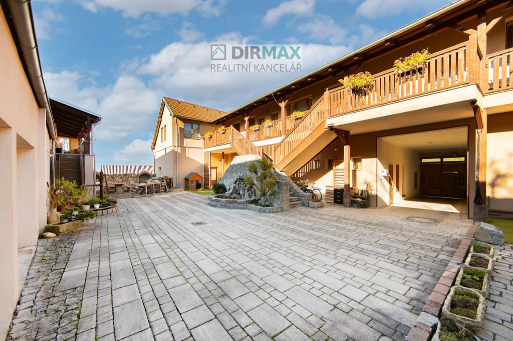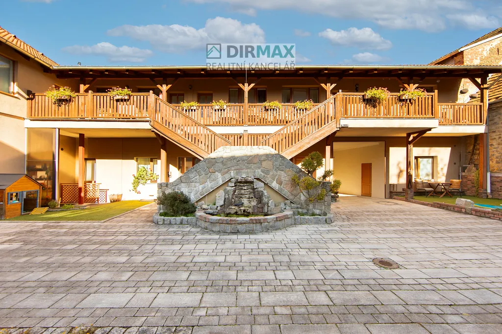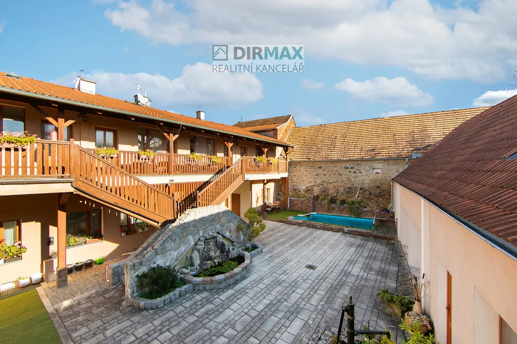 Byt je součástí stylového projektu z roku 2017, kdy byla původní vesnická stavba, citlivě přestavěna na moderní bydlení. Vzniklo zde pouhých 12 bytových jednotek, které sdílejí útulné vnitřní atrium – ideální místo pro relaxaci, nebo letní posezení. K dispozici je i venkovní bazén (užívání po dohodě se správcem).