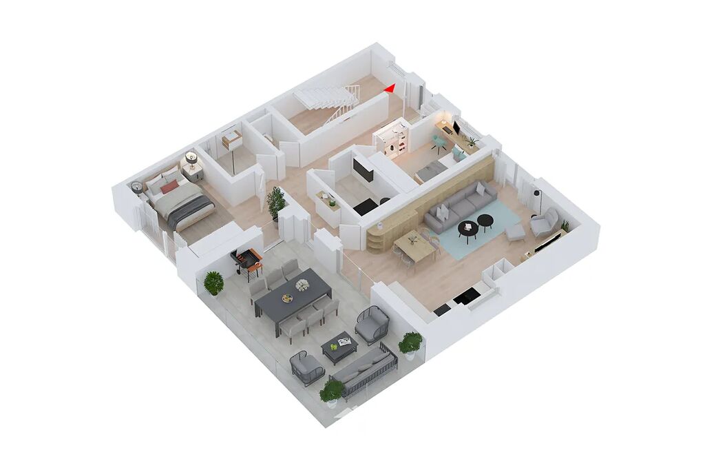 Byt se nachází v podkroví novostavby rodinného domu, která zahrnuje pouze tři bytové jednotky – každou na samostatném podlaží. Díky tomu si můžete užívat soukromí a klid, jaký běžné bytové domy nenabízejí. Hlavní dominantou této jednotky je prostorná terasa o velikosti 25,4 m², ideální pro posezení s rodinou a přáteli, relaxaci u kávy nebo večerní sklenku vína s krásným výhledem do okolní přírody.