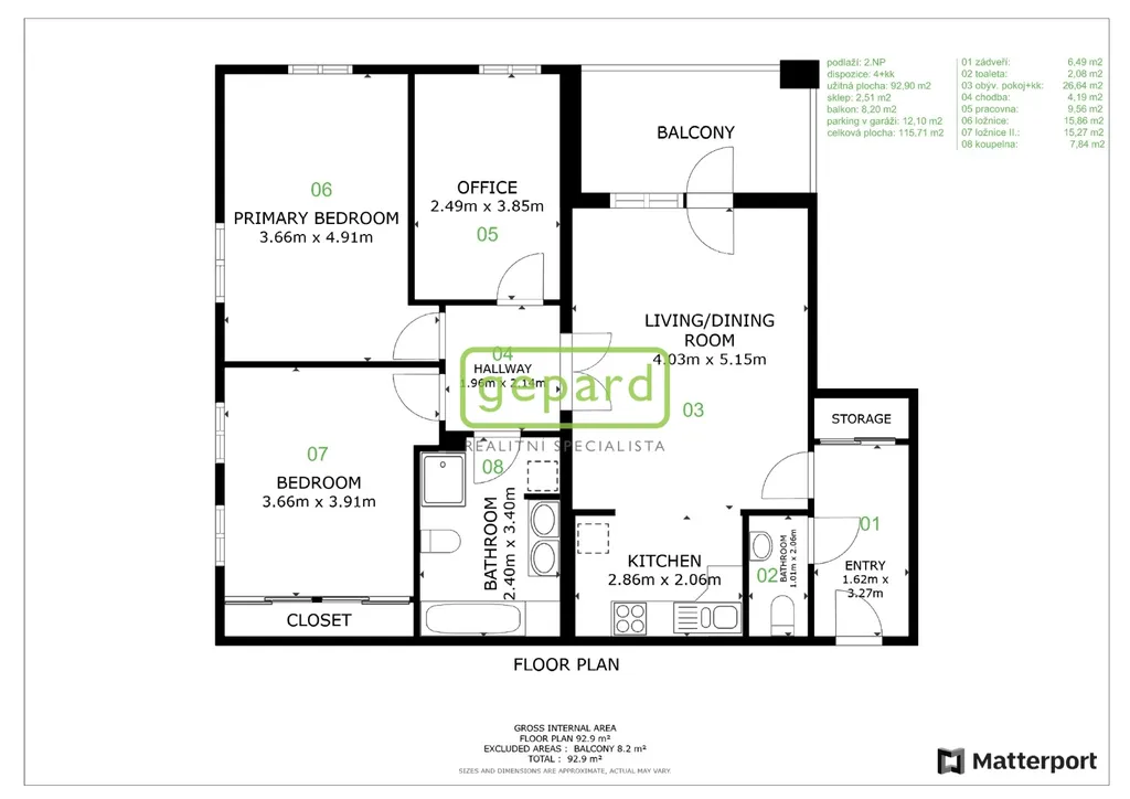 Celková plocha bytu činí 115,71 m² a užitná plocha dosahuje 92,9 m². Byt je plně vybaven kvalitním nábytkem a moderními spotřebiči, což usnadní stěhování nebo v případě investice, není nutné investovat do vybavení, byt je zcela připraven k nastěhování. V bytové jednotce je k dispozici také příjemná terasa o velikosti 8,2 m², ze které je výhled do zeleně, což poskytuje perfektní místo pro relaxaci nebo rodinné grilování. V podzemních garážích je parkovací stání, které je již zahrnuto v ceně, což dodává další komfort.