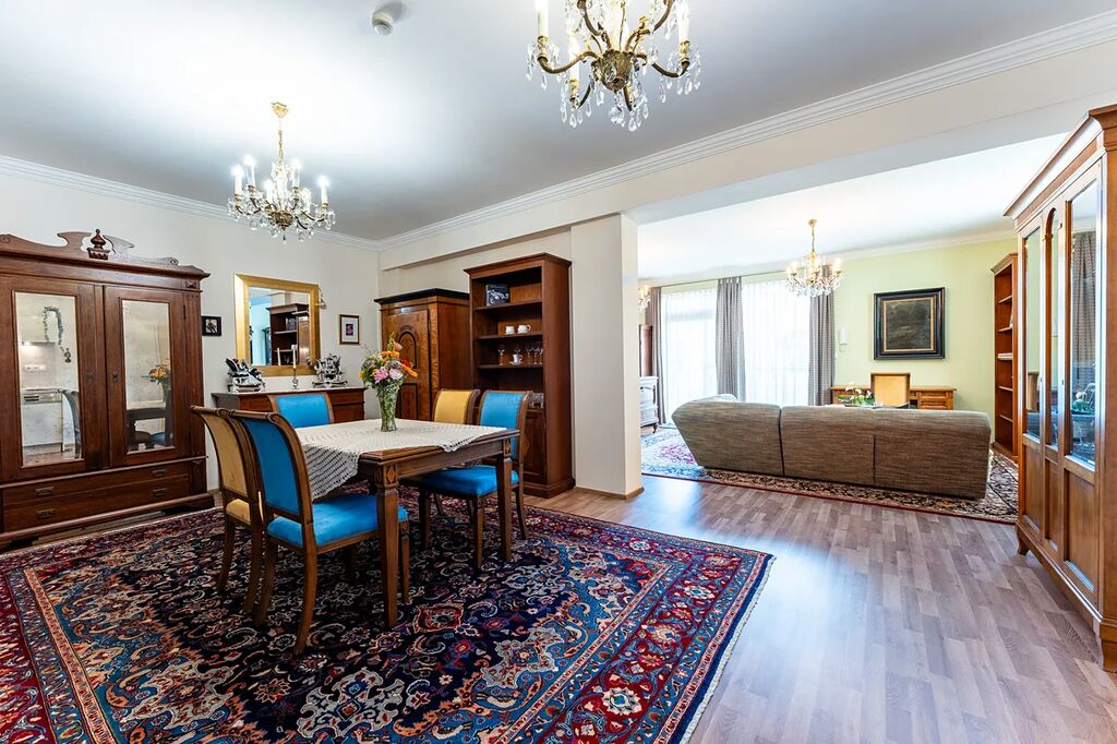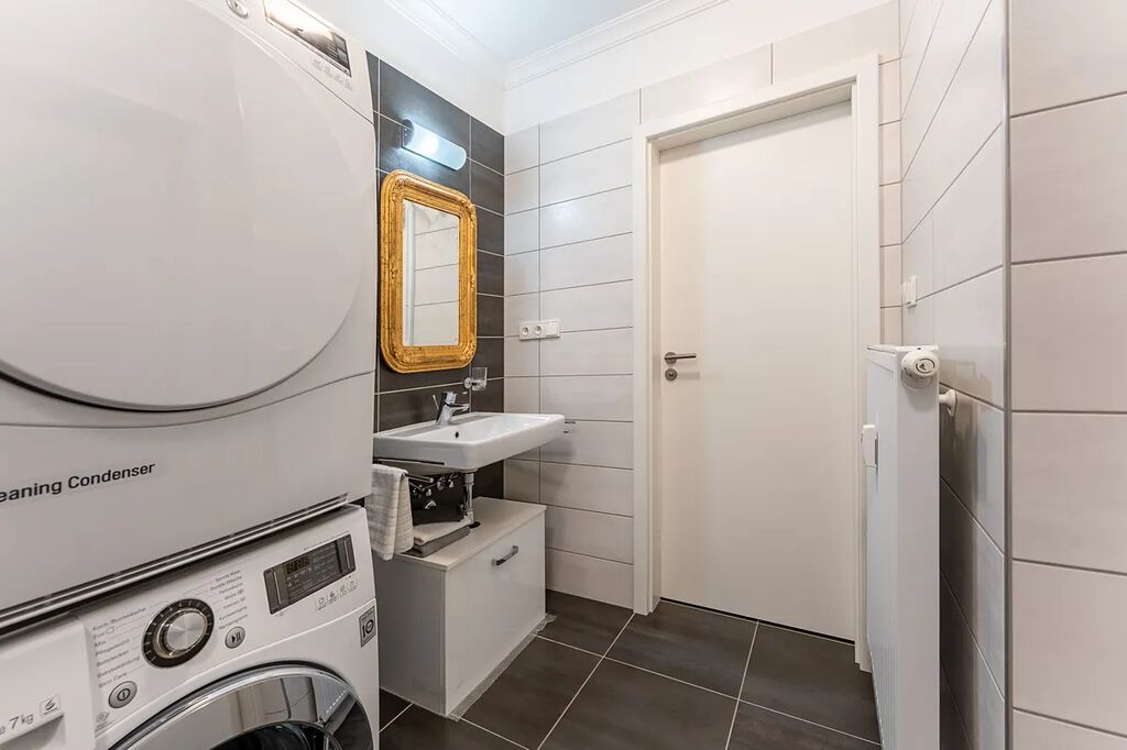 - Kvalitní vybavení, včetně kuchyňské linky s elektrospotřebiči a koupelny se zařizovacími předměty, pračkou a sušičkou.