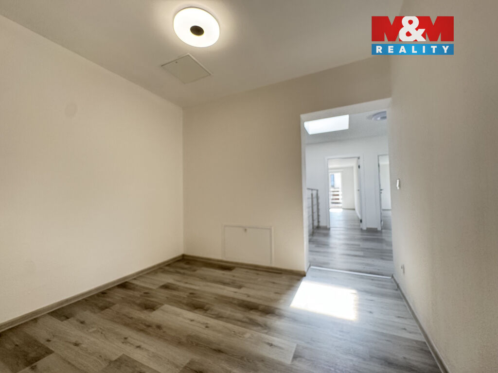 Nabízíme k prodeji stylovou a prostornou bytovou jednotku 4+kk v moderním dvoupodlažním rodinném domě, který je rozdělen na dvě samostatné bytové jednotky. Každá má vlastní vstup, soukromou zahradu, garáž a vlastní parkovací stání. Nabízená jednotka se nachází v levé části domu při čelním pohledu a poskytuje komfortní rodinné bydlení v klidné a vyhledávané lokalitě města Kaplice, ulice Polní, v nové zástavbě rodinných domů. Dispozice: 1. NP: vstupní zádveří, prostorná chodba se schodištěm, koupelna se sprchovým koutem + WC, technická místnost/garáž, obývací pokoj s kuchyňským koutem a vstupem na balkon. 2. NP: tři samostatné pokoje (ložnice a dva dětské pokoje), prostorná koupelna s vanou, sprchovým koutem + WC. Stavba byla zahájena v roce 2022 a před převodem na nového vlastníka bude řádně zkolaudována. Vytápění zajišťuje moderní tepelné čerpadlo s podlahovým topením. V případě zájmu o více informací či sjednání prohlídky nás neváhejte kontaktovat. Rádi Vám nemovitost ukážeme.