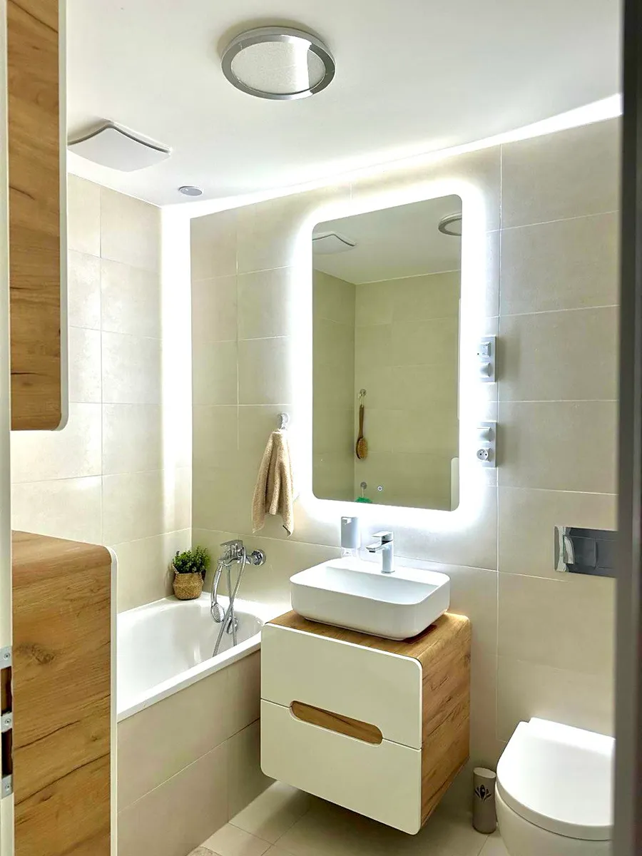 Dominantou bytu je prostorný a prosvětlený obývací pokoj s moderním krbem a pohodlnou sedací soupravou, na který navazuje balkony o velikosti 12 m² a 5 m² s krásným výhledem do okolí.