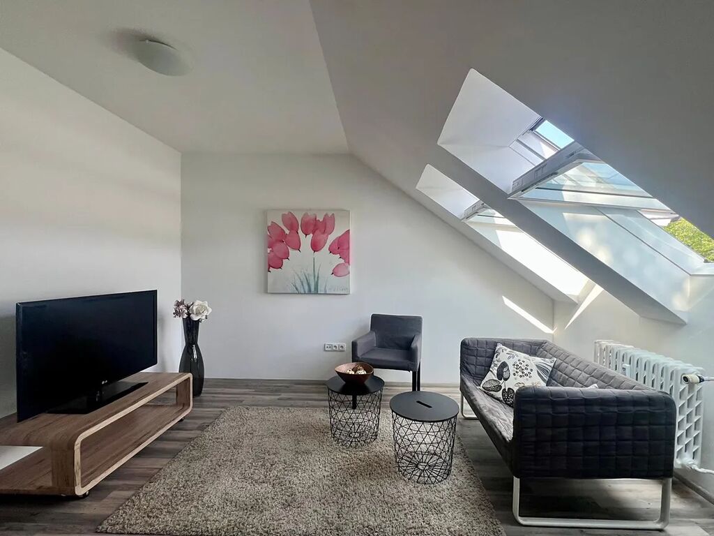 Z prostorné předsíně vstoupíte do dvou oddělených pokojů, pracovny, koupelny a na toaletu. V předsíni a v ložnici naleznete vestavné skříně. V Koupelně s vanou je vestavná skřínka a pračka. Toaleta je samostatná. Velká střešní okna zajištují dostatek světla po celý den. Ložnice je situovaná směrem ke klidnému vnitrobloku.