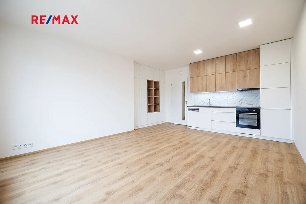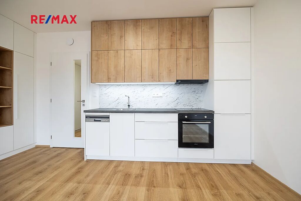 V bytě je moderní kuchyňská linka s vestavnými spotřebiči včetně myčky, úložné vestavné skříně jsou jak v předsíni, tak i v obývacím pokoji. Součástí pronájmu je taky pračka se sušičkou.