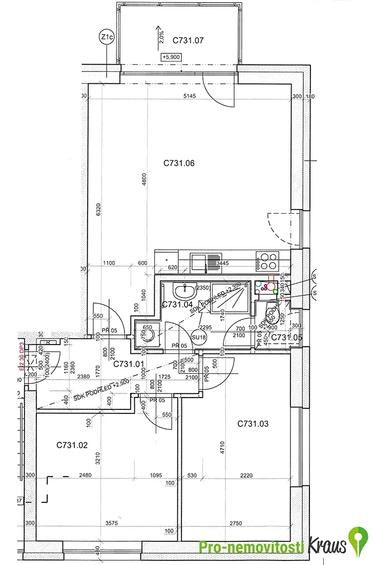 Nabízíme k pronájmu byt 3+kk v Hořovicích u nemocnice. Byt se nachází ve druhém patře (3. NP) zděné novostavby s výtahem. K dispozici je nová kuchyňská linka včetně kvalitních spotřebičů Bosch (lednice, mikrovlnka, myčka, indukční deska), vestavná skříň v ložnici a botník v předsíni – vše vyrobeno na míru z kvalitních materiálů.