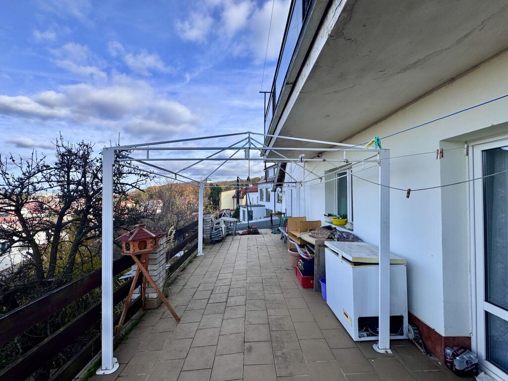 (terasa další u vchodu za brankou, vhodná na posezení / sušení prádla apod.)