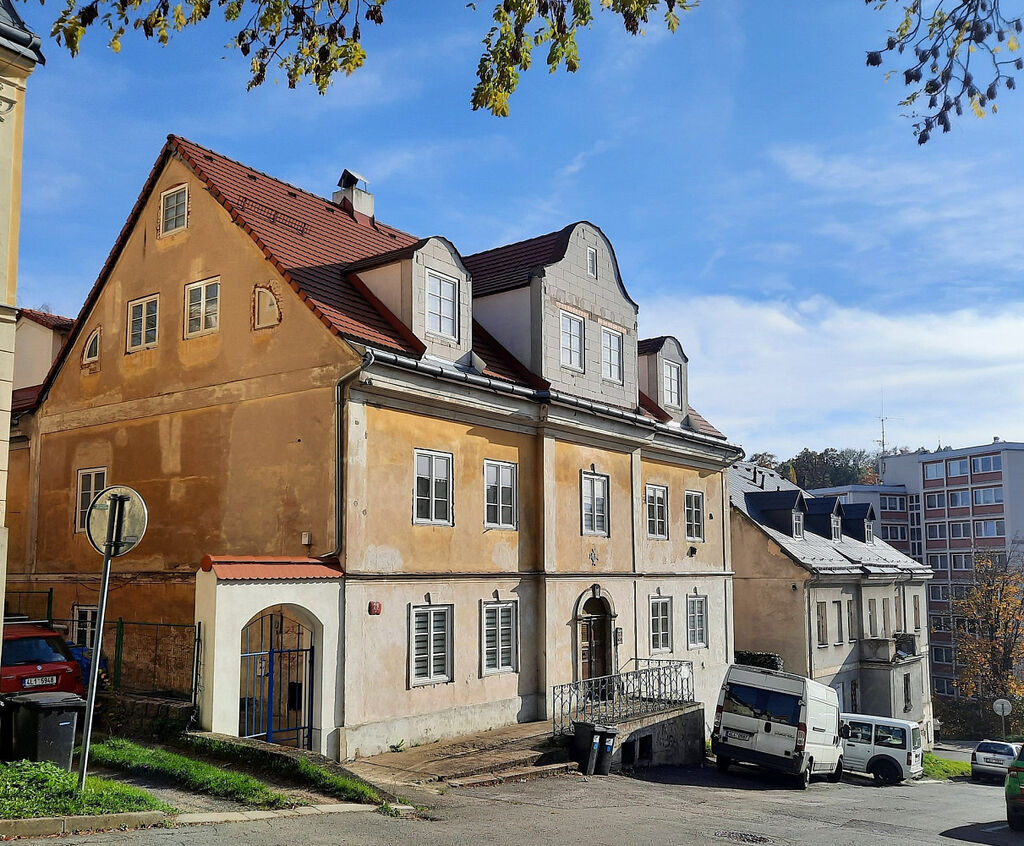 Klidná lokalita s parkem a zelení přímo před domem, centrum města v docházkové vzdálenosti cca 7 minut.