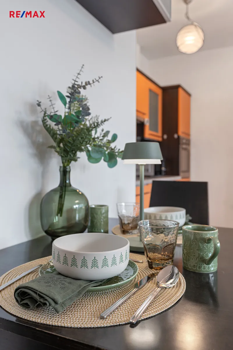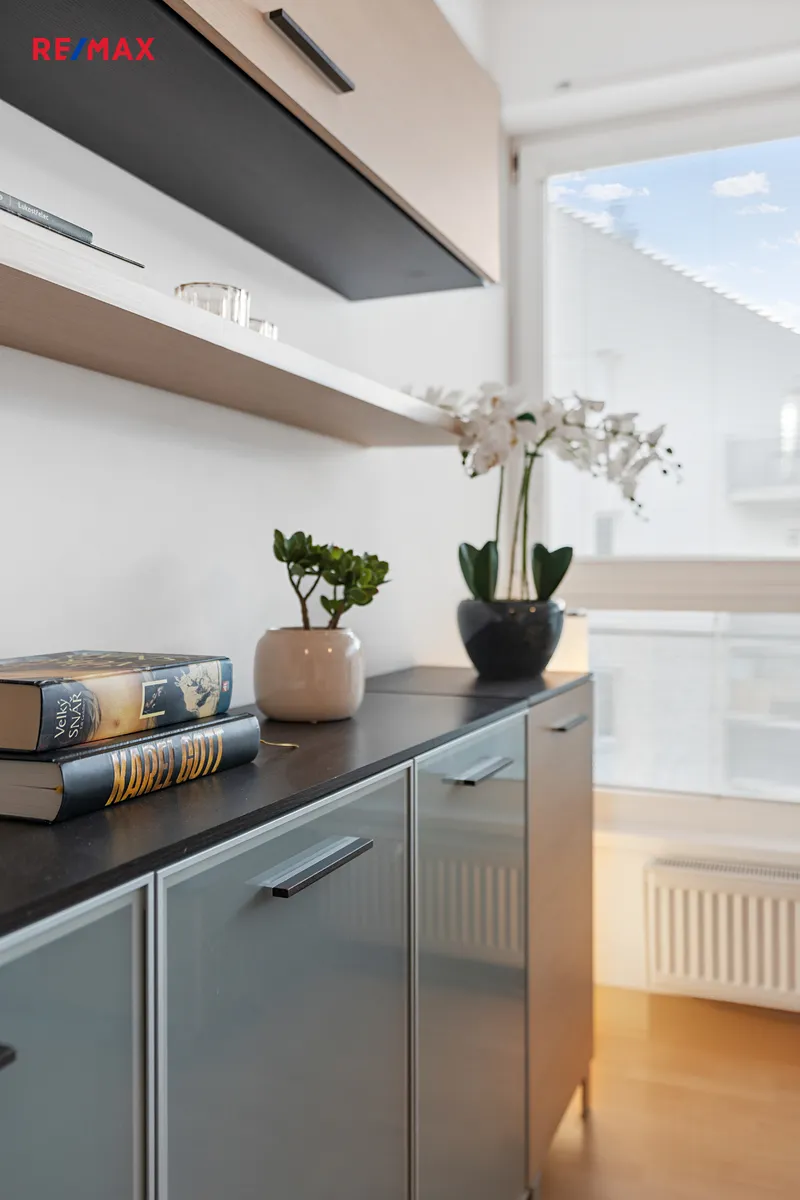 Dispozice bytu je promyšlená do posledního detailu. Vstupní předsíň, obývací prostor s kuchyňským koutem, koupelna se sprchovým koutem. Součástí bytu je útulný balkon orientovaný na jihozápad, který nabízí příjemné posezení. Ráno si zde můžete vychutnat kávu, večer sklenku vína po práci. Je to prostor, kde můžete odpočívat, číst nebo si jen na chvíli vydechnout od ruchu města.
