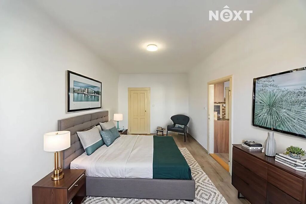 Interiér prošel před deseti lety vkusnou rekonstrukcí — od nových elektrických rozvodů přes modernizovanou koupelnu a toaletu až po nové plovoucí podlahy, které dodávají bytu příjemné teplo domova. Nyní je čerstvě vymalovaný a připravený na nové majitele, kteří si ho zařídí dle svých představ.