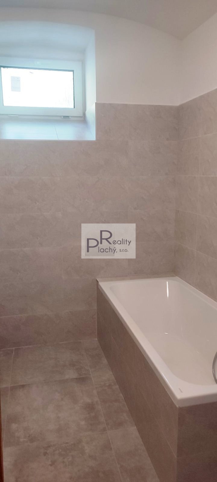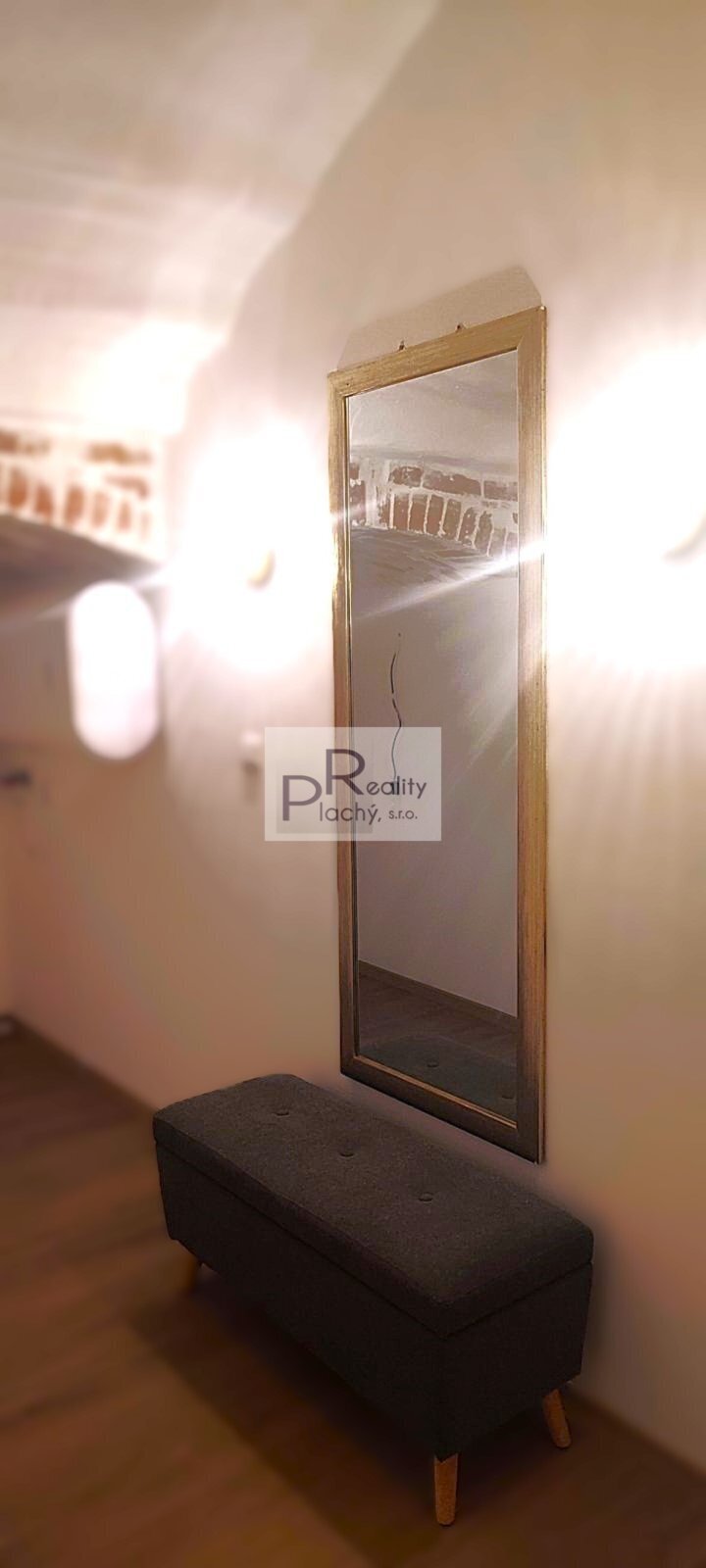 Byt ve sníženém přízemí menšího bytového domu je architektonicky velmi zajímavě vyřešený. Celý je koncipován jako moderní, otevřený prostor. Předsíň volně přechází do kuchyně, která je otevřená do bývacího pokoje. Ložnice je částečně oddělena od obývacího pokoje zdí. Z pokoje i ložnice vedou prosklené dveře na malou soukromou terasu. Byt je částečně zařízený. Vytápění je podlahové elektrickým kotlem, ohřev vody el. bojlerem. Nájemné je 12.000,– Kč měsíčně + 500,– Kč záloha na vodné. Elektřina bude přepsána na nájemníky. Vratná kauce 20.000,– Kč. V domě jsou společné prostory pro uskladnění kol, nebo kočárků a sušárna. Volný od 01.01.2026