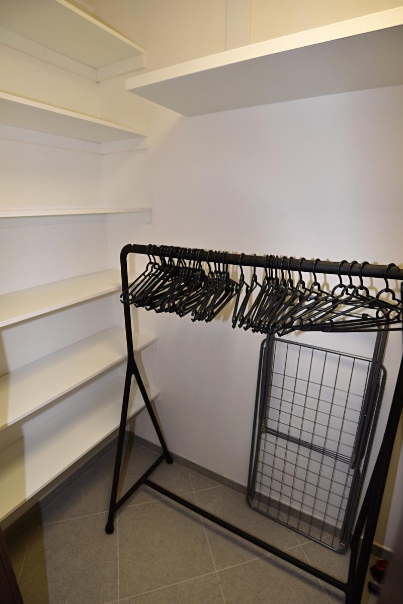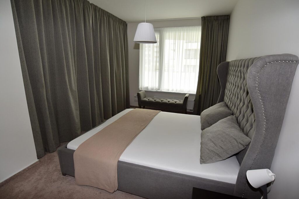 Velkou výhodou je samostatná šatna, která poskytuje dostatek úložných prostor, a moderní koupelna s vanou a pračkou. Interiér je laděn do moderního a nadčasového stylu, který podtrhují kvalitní materiály, koberce na podlahách a promyšlené designové detaily, díky nimž působí byt mimořádně útulně a harmonicky.