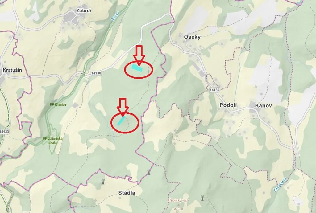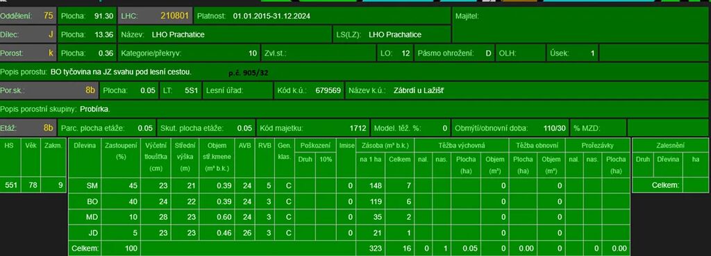 - p.č. 905/32 vedená jako lesní pozemek o celkové výměře 3 576 m2 (stáří lesa 88 let - zastoupení dřevin smrk, borovice, modřín, jedle, stáří lesa 82 let- zastoupení dřevin borovice, stáří lesa 59 let - zastoupení dřevin borovice), k pozemku vede příjezdová cesta