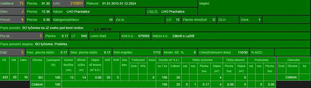 - p.č. 905/10 vedená jako lesní pozemek o celkové výměře 6 100 m2 (stáří lesa 57 let- zastoupení dřevin borovice, stáří lesa 18 let - zastoupení dřevin bříza, keře, smrk, javor), pozemek je ve svahu,