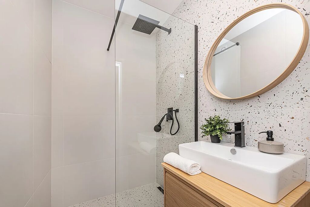 Dispozici bytu tvoří dvě neprůchozí ložnice, velkorysý obývací pokoj spojený s kuchyní, prostorná koupelna se sprchovým koutem, samostatný záchod a uzamykatelná šatna/technická místnost.