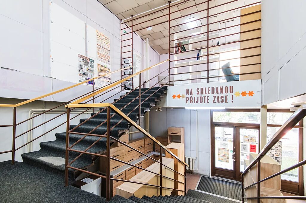 Budova je vybavena dvěma širokými schodišti, bezpečnostním systémem a požárním vodovodem.