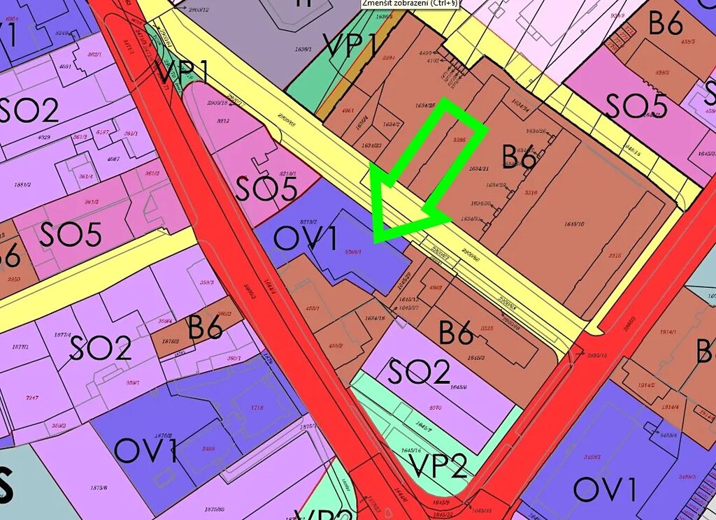 Dle územního plánu je nemovitost vedena jako plocha občanského vybavení, určená pro obchod, služby, veřejné stravování, kulturní či sociální zařízení.