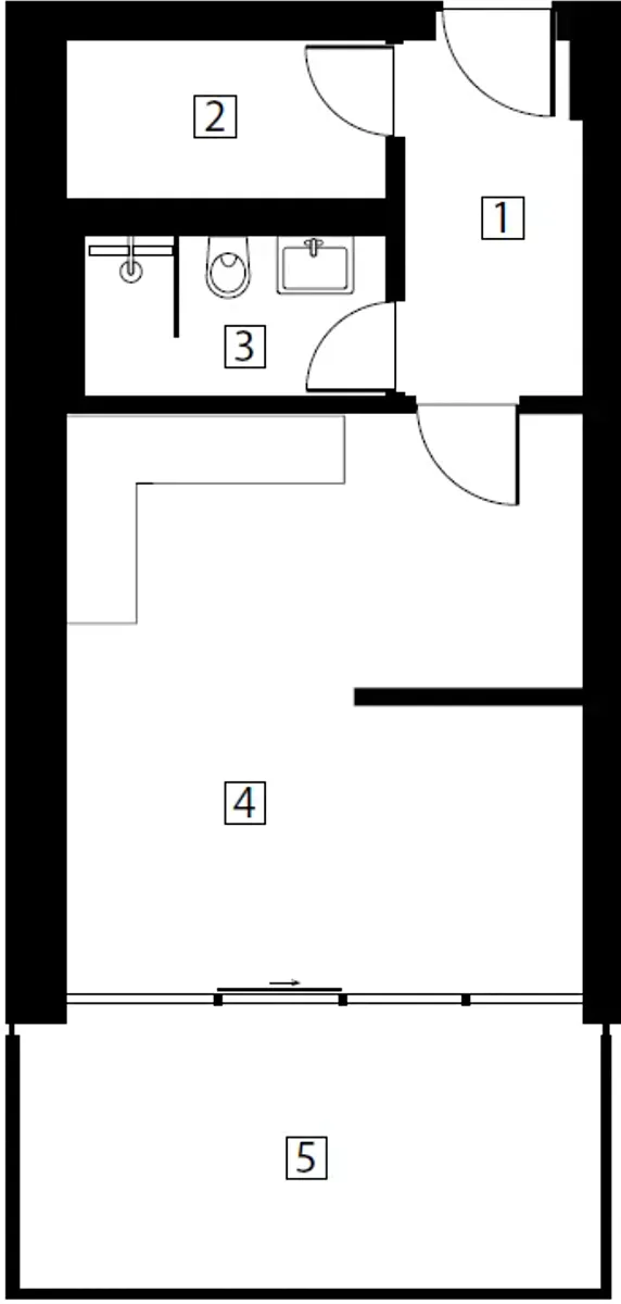 Tento apartmán má dispozice 1+kk, je orientovaný na jihozápad s výhledem na Lipno. Má prostornou terasu, kryté parkovací stání (až 3,7 m široké) a sklep v ceně. Součástí standardu je podlahové topení, velkoformátová dlažba, nadčasová sanita, bezfalcové dveře a energetická třída B.