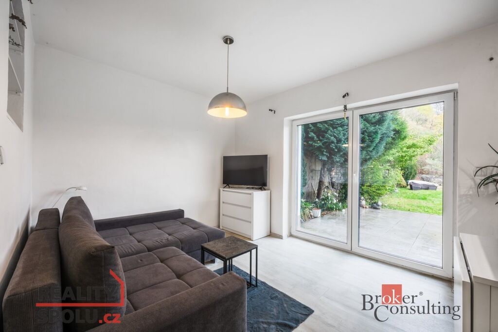 • 1. NP: zrekonstruovaná bytová jednotka 2+kk s krbem a přímým vstupem na terasou 14 m² a do zahrady (241 m²)