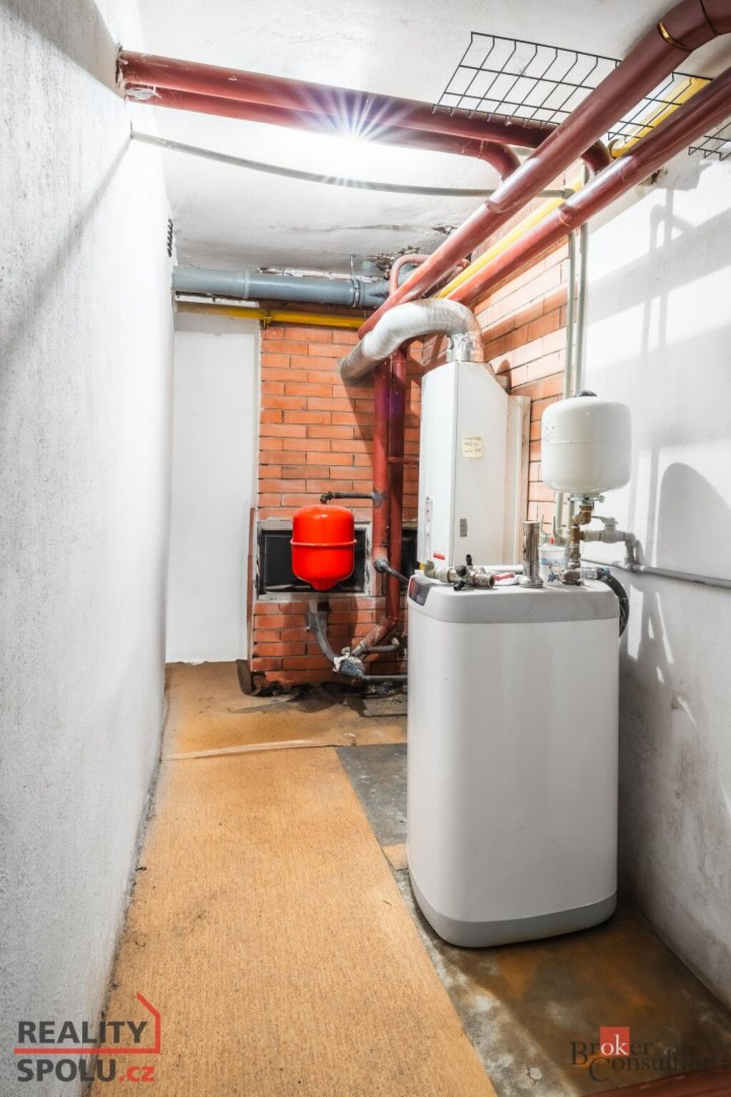 Vytápění a ohřev vody zajišťuje centrální plynový kotel, dům je napojen na všechny inženýrské sítě, má plastová okna s trojskly a je energeticky úsporný (C – 72,5 kWh/m²/rok).