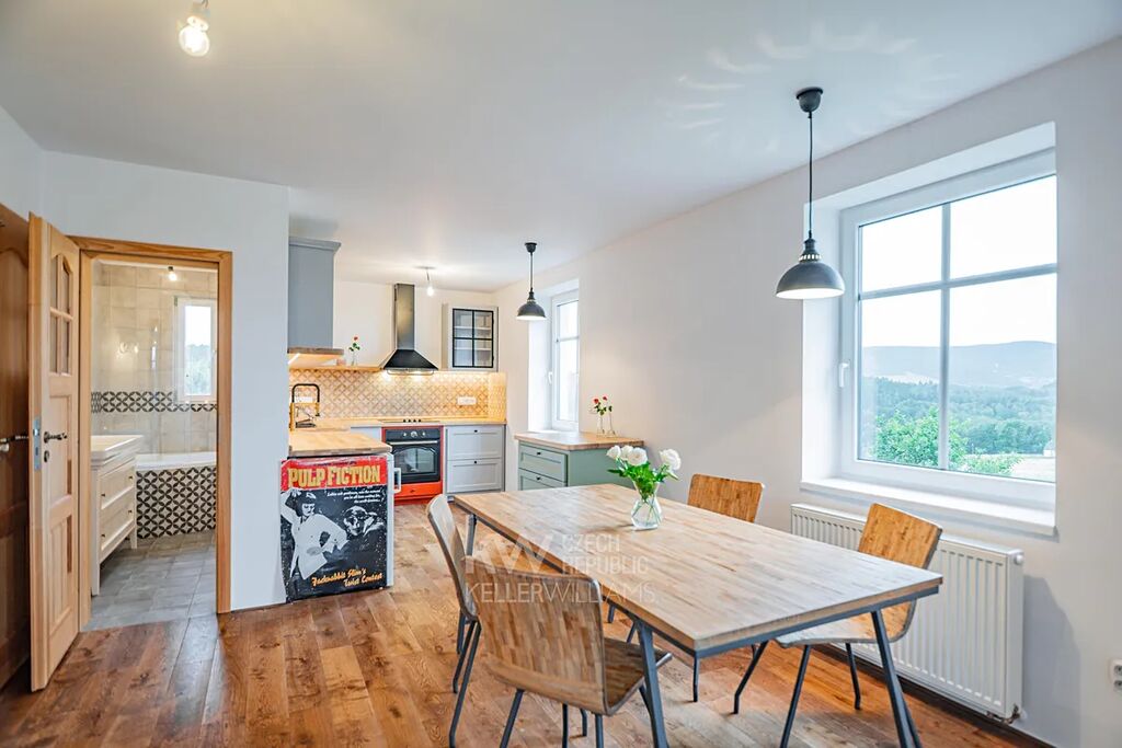 Tak jste tu tedy správně. Dnes pro Vás mám rustikální vilu z roku 1938 nacházející se u Mojžíšova pramene. Vila byla postavena česko-německou rodinnou, dle návrhů německých architektů a je vystavěna z cihel. Dům byl kompletně a citlivě zrekonstruován a k dokončení rekonstrukce došlo před dvěma lety. Dům se nachází téměř na samotě přesto pouhých 10min. do centra Liberce. Pozemek je na velmi žádaném a oblíbeném místě, v populární lokalitě Vratislavic nad Nisou s vyhlídkami na Liberec a Ještěd, vstupem do okolních lesů směrem na vyhlídku Císařský kámen a kousek nad domem jsou dokonce vidět i Krkonoše. Romantické prostředí s přilehlými loukami a lesy nabízí velmi klidné bydlení, bez přímých sousedů avšak s velmi dobrou dostupností do centra Liberce, Jablonce nebo s pohodlným napojením na Prahu (ta je cca 55 min autem). Koupat se můžete například ve Veseckém rybníku (1km na kole). Jedná se o velmi unikátní prostor, vzhledem k jeho poloze a okolí.