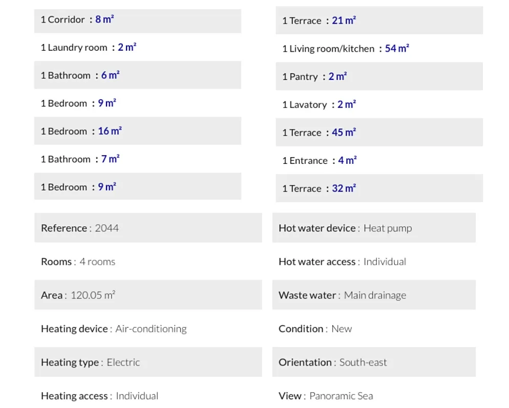 Výjimečná příležitost vlastnit novou luxusní vilu s výhledem na moře: nemovitost 4kk 120m2 s privátním střešním bazénem 17m2 s panoramatickým výhledem na moře, 2 terasami a zahradou. Součástí je parkovací stání pro 3 auta a vlastní výtah do všech pater. Nadstandartní výbava zahrnuje solární panely, optický kabel, videotelefon, klimatizace, velkoformátové dlažby a obklady Marazzi, moderní vybavení sanitou v koupelnách/toaletách. Zahrada bude vybavena soukromým automatickým zavlažovacím systémem.