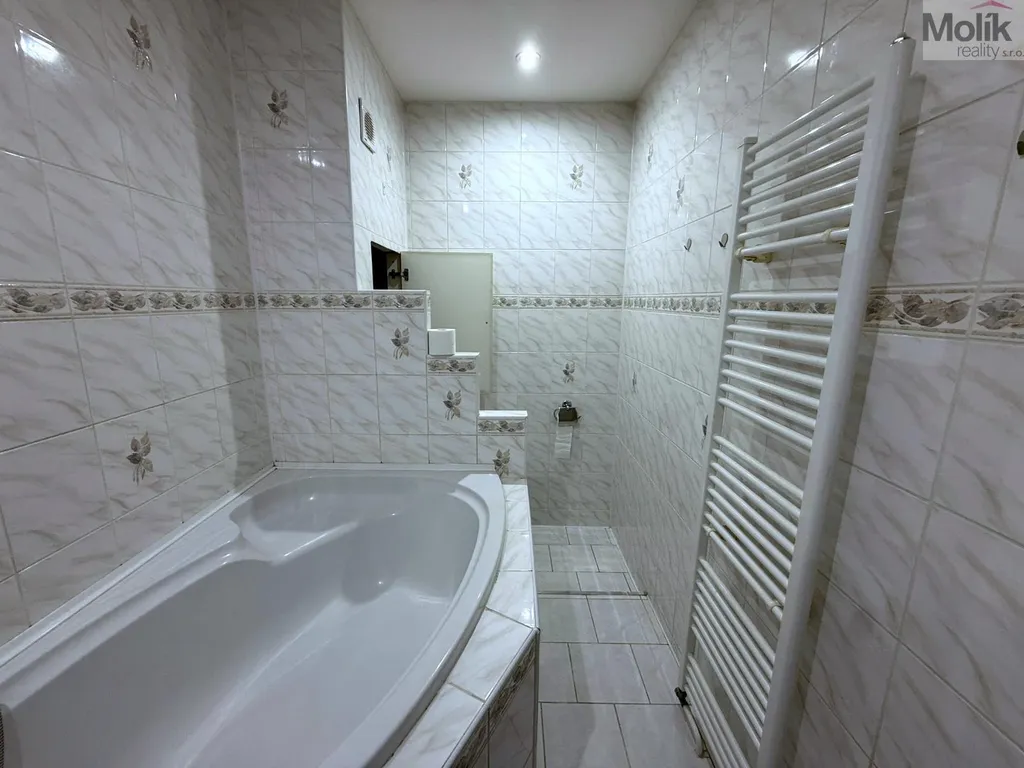 Dispozice bytu zahrnuje předsíň, kuchyně, obývací pokoj, dva pokoje, koupelnu s rohovou vanou a WC. V bytě zůstává veškeré vybavení na fotkách.