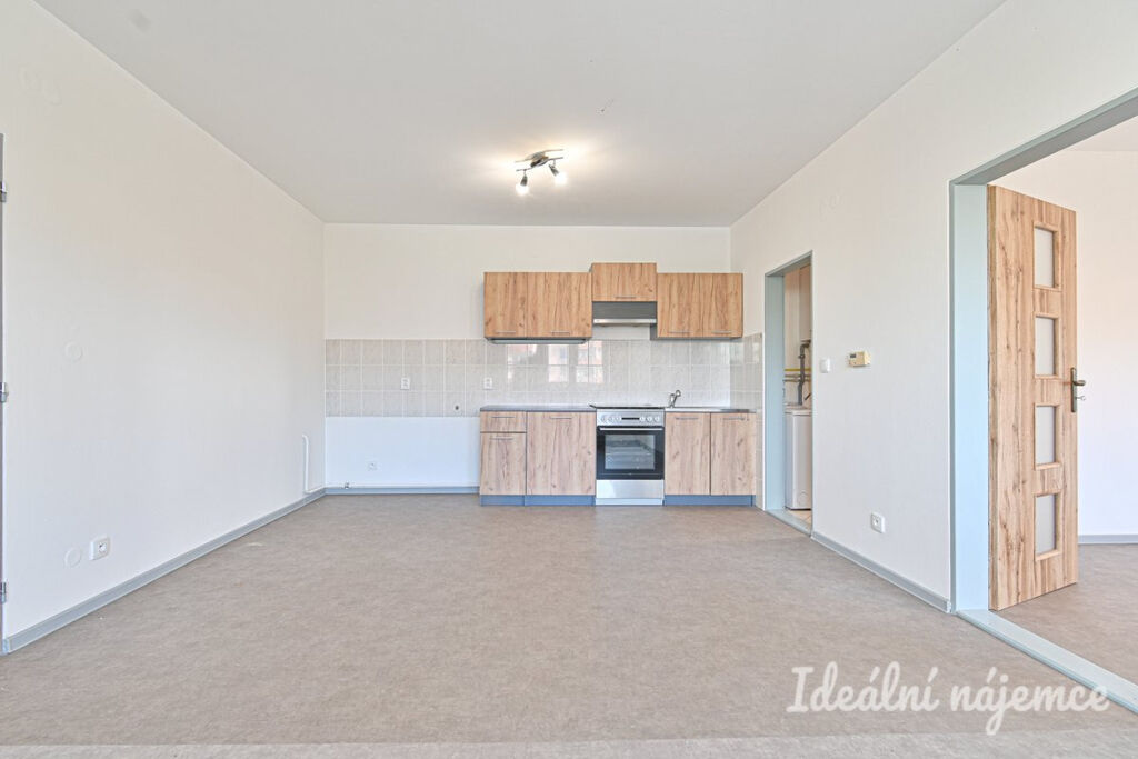 Kuchyně je zařízena kuchyňskou linkou vybavenou spotřebiči jako varná deska, trouba a digestoř, zbytek místnosti je bez vybavení a nabízí prostor jak pro jídelní kout, tak pro obývací část. Ložnice je taktéž bez vybavení.