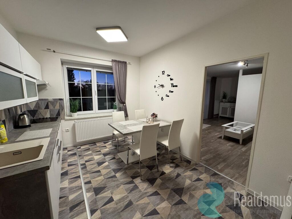 Byt je kompletně vybavený a nabízí moderní kuchyňskou linku s vestavěnými spotřebiči, jídelní kout, útulný obývací pokoj, prostornou ložnici s dostatkem úložných prostor a koupelnu se sprchovým koutem.