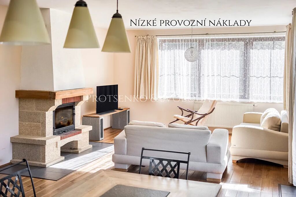 Dům má velmi nízké provozní náklady: plyn cca 1.500 Kč, elektřina cca 1.000 Kč, voda ze studny, stočné dle počtu osob.