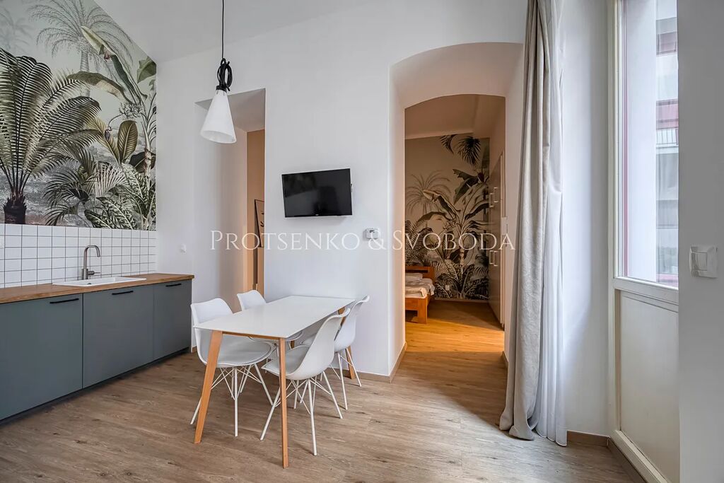 Realitní kancelář Protsenko & Svoboda vám nabízí k prodeji kompletně zařízený byt o dispozici 2+kk a podlahové ploše 53 m², k němuž náleží předzahrádka o velikosti 20 m² a sklepní kóje 2 m². Uvedená celková plocha 73 m² zahrnuje podlahovou plochu bytu 53 m² a poměrnou část předzahrádky 20 m², aby bylo srovnání s jinými nabídkami jednodušší a přehlednější. Nemovitost je situována v jedné z nejžádanějších pražských čtvrtí – Karlíně, který je dnes považován za stylové a módní centrum metropole.