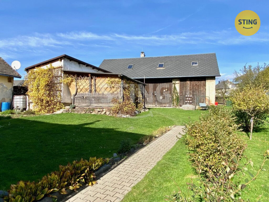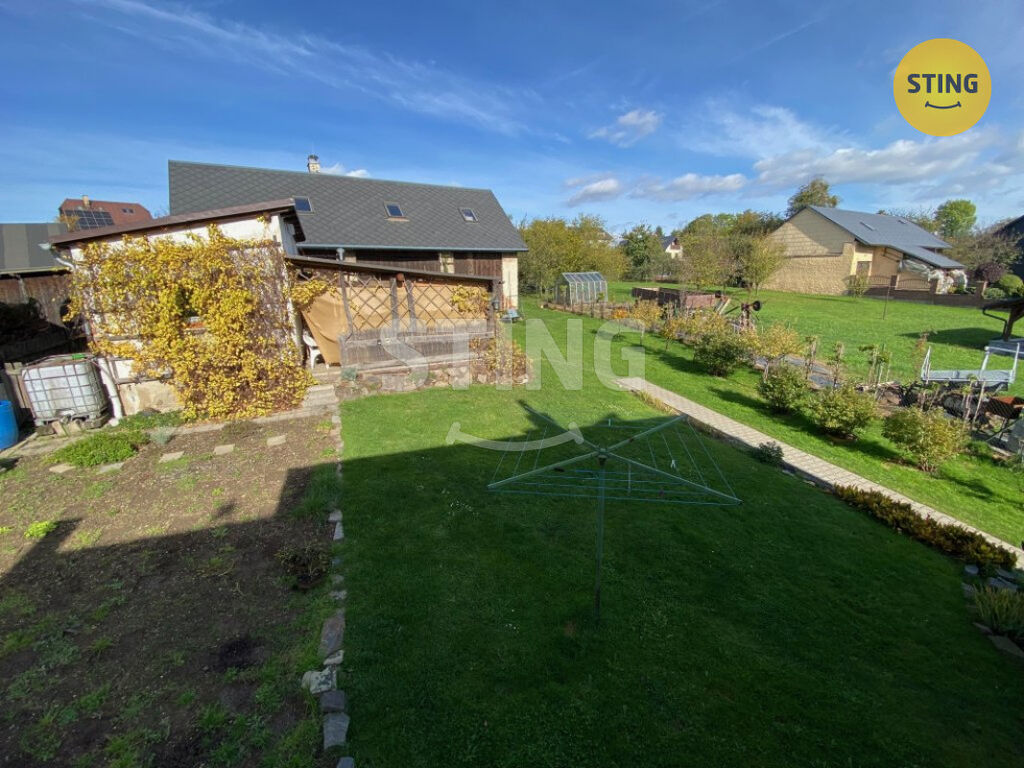 K domu náleží rozlehlá zahrada s dostatkem soukromí, zpevněné venkovní stání a rozsáhlá stodola vhodná jako dílna či sklad. Další dílna potěší kutily, pergola nabízí příjemné posezení a nechybí ani zázemí pro zahradní párty – venkovní kuchyně a toaleta.