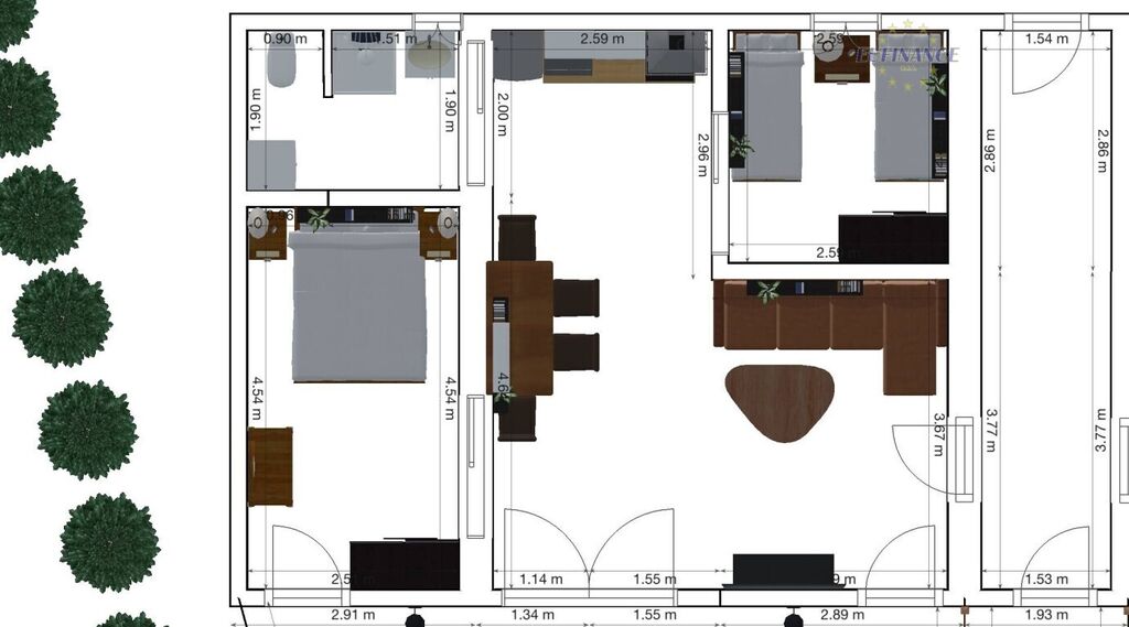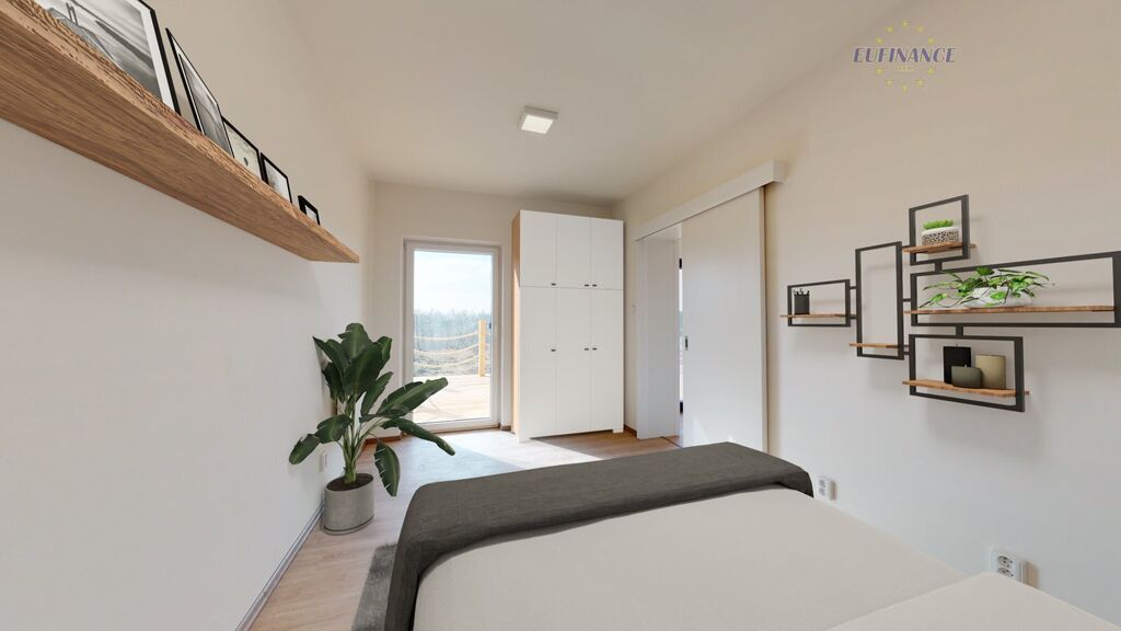 Nízkoenergetická dřevostavba byla zkolaudována v březnu 2023 a dosud v ní nikdo nebydlel a je napojena na městský vodovod i kanalizaci, elektřinu 230 a 400 V a internetové připojení (WIFI v ceně nájmu). Každá bytová jednotka je vytápěna tepelným čerpadlem (úsporná klimatizační jednotka zn. Haier, která v zimě topí a v létě chladí). V pokojích jsou také k dispozici elektrické radiátory. Na jižní straně bytů jsou všude osazeny dveře s ventilací a v obývacím pokoji pojezdové francouzské dveře. Všechny dveře i okna mají osazené posuvné sítě proti hmyzu. Každý byt má novou kuchyňskou linku vč. nových vestavěných spotřebičů (lednice, mrazák, mikrovlnná trouba, horkovzdušná trouba, myčka, digestoř). V celém bytě jsou položeny vinylové podlahy. Koupelna je vybavena kompletní novou sanitou viz fotografie. Každý byt má své vlastní podružné měřiče vody i elektroměru. V bytě není povoleno mít domácí mazlíčky (pes, kočka).