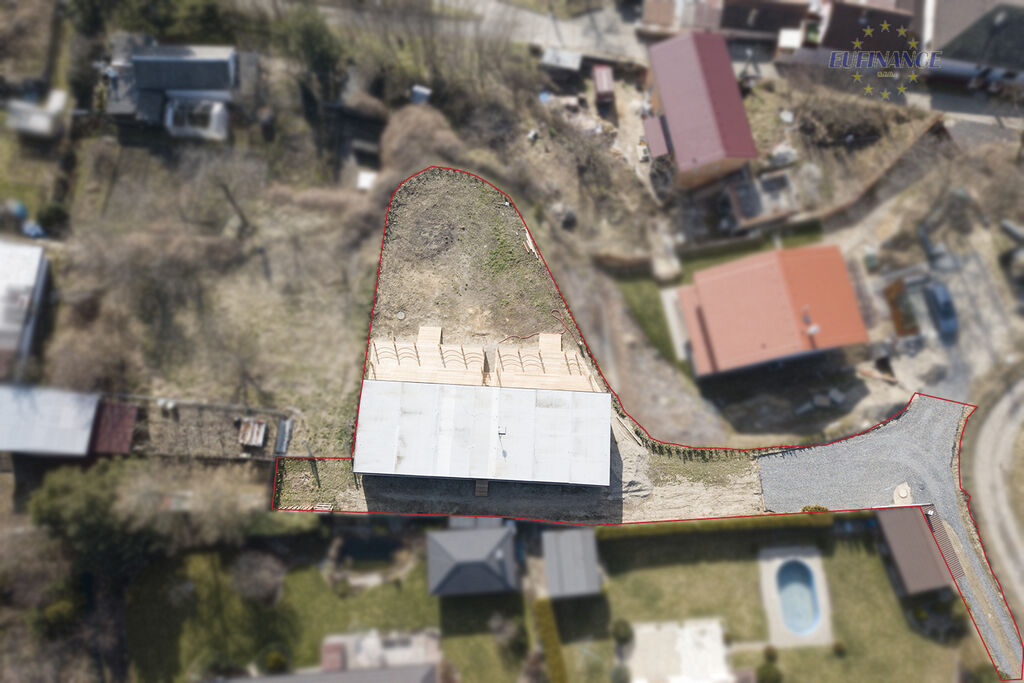 Dvojdům disponuje celkem dvěma zrcadlově stejnými bytový jednotkami 3+kk se společnou vstupní chodbou a nachází se na rovinatém pozemku s překrásným výhledem do zeleně na horu Hostibejk a rovněž nabízí maximální soukromí. Na pozemek je vjezd přes bránu na dálkové ovládání, kde jsou před domem parkovací stání pro 4 auta (každý byt má dvě parkovací stání). Každá bytová jednotka má vlastní půlku zahrady, velké zamykací úložné prostory pod terasou a rovněž ve společném velkém zahradním domku. Na pozemku je dále k dispozici vsakovací jímka s čerpadlem pro využití dešťové vody k zalévání zahrady. Pozemek je po celém obvodu osázen bobkovišněmi a oset trávou. Od parkovacího stání jsou kolem celého domu s terasami položeny dekorační nášlapné kameny.