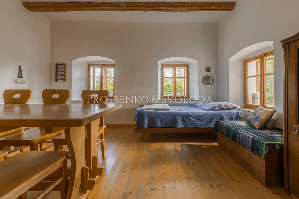 Dispozičně se nemovitost skládá ze dvou částí: obytné a hospodářské. Obytnou část domu v 1.NP tvoří velkoryse pojata kuchyň s jídelnou (31 m²), 2x pokoj (22 m² a 11 m²), koupelna (8 m²), samostatná WC (1,45 m²), spíž (3 m²), terasa (11 m²) a v mezipatře obývací pokoj s krbem (17 m²). Obytnou část domu ve 2.NP tvoří velká ložnice (53 m²) a galerie, která slouží jako ložnice (38 m²). Hospodářská část se pak skládá ze stodoly (38,5 m²) a sklepu (8 m²).