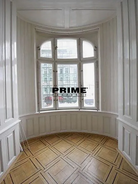 K dispozici od února 2026. Prostorný, nezařízený, 3 ložnicový byt se 2 koupelnami k pronájmu, 4+1, 174m2, situovaný v 1. patře zrekonstruovaného secesního domu s výtahem.