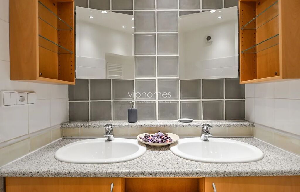 Interiér bytu tvoří vstupní hala, prostorným světlý obývací pokoj s plně vybavenou kuchyní, jídelním prostorem, 2 ložnice, 2 koupelny, samostatná toaleta.